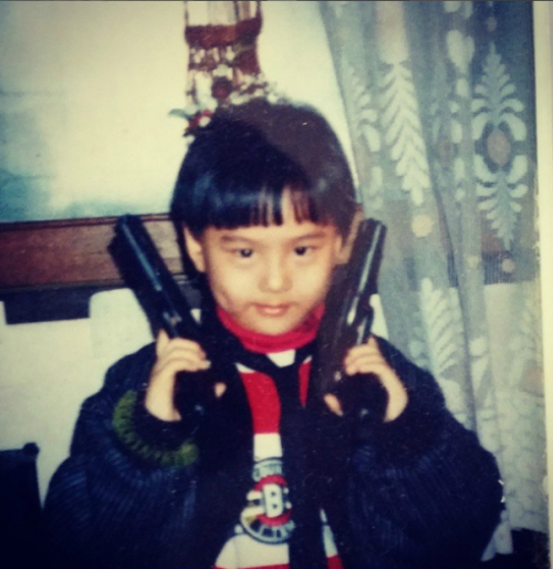 올린 사진 속 김용준은 장난감 총을 들고 카메라를 응시하고 있다.