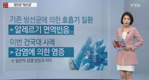 | 건대 집단폐렴 원인, 국내 인체 감염 보고 없었다…원인 추정 ‘방선균’은? 사진=YTN 뉴스 캡처 |