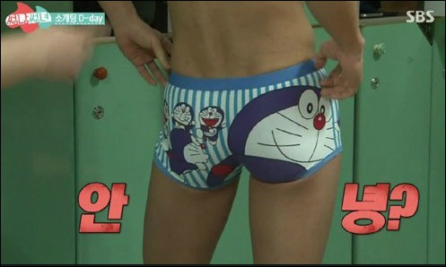 이날 방송에서 심형탁은 도라에몽 팬티를 입고 있어 도라에몽 덕후 임을 증명했다.
