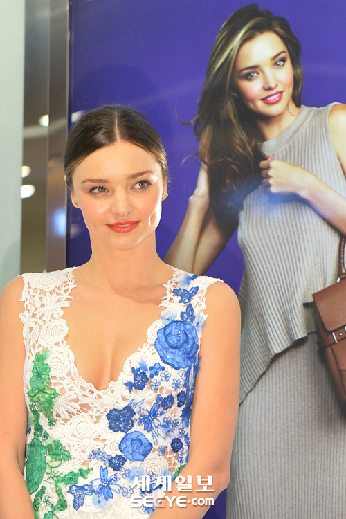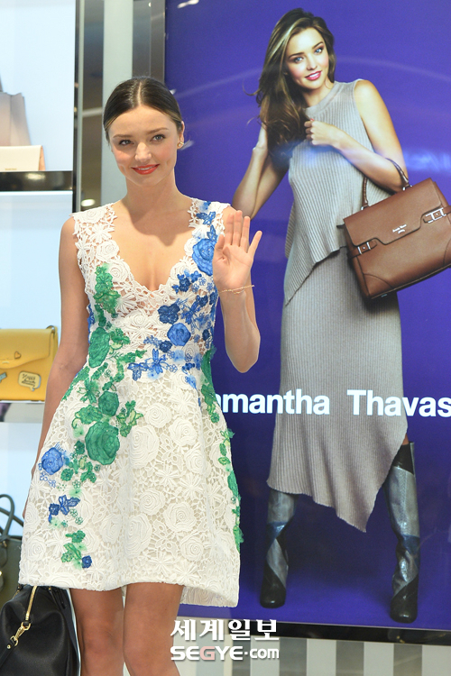 모델 미란다 커가 11일 오전 서울 소공동 명동 롯데백화점 '사만사 타바사(Samantha Thavasa)' 매장에서 진행된 행사에 참석해 포토타임을 하고 있다.