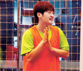 | 핸드볼 국가대표팀 유소정이 14일 덴마크 콜링 핸드볼 경기장에서 연습을 마치고 포즈를 취하고 있다. 콜링=남정훈 기자 |
