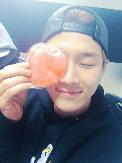 공개된 사진 속에는 조타가 두 눈을 질끈 감고 하트 모양으로 된 물건을 들고 있는 모습이 담겨있다.