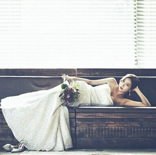 공개된 사진 속 임수향은 순백의 웨딩드레스를 입고 꽃을 든 채 긴 의자에 누워 있다. 임수향의 몸매와 미모가 눈길을 끌었다.
