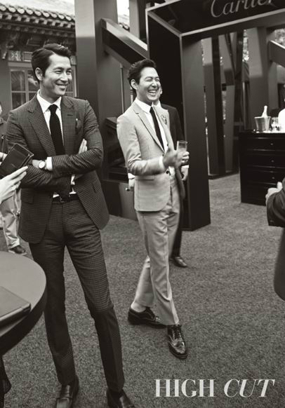 공개된 화보 속 정우성은 슈트를 입고 이정재와 함께 해맑게 웃는 모습이 담겨있다.