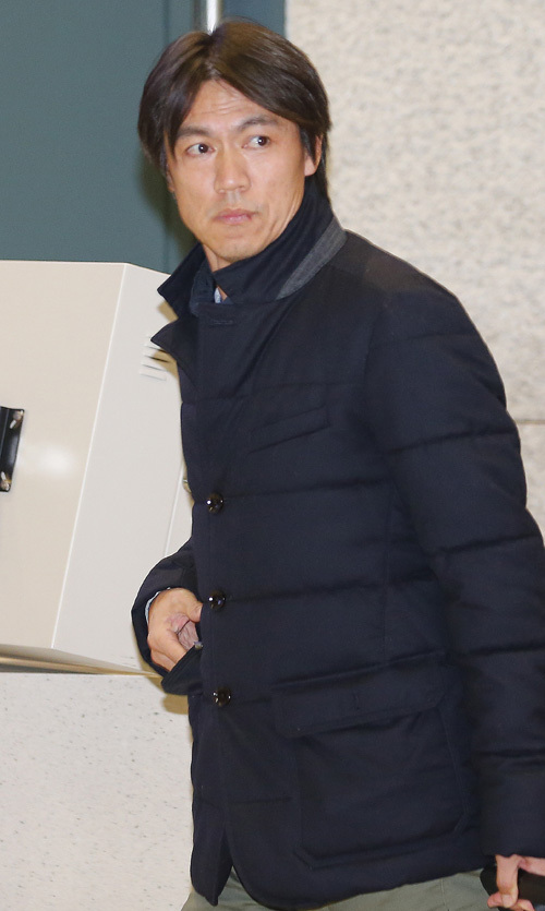 | 중국 프로축구 항저우와 계약을 마치고 돌아온 홍명보 감독이 17일 인천공항을 빠져 나가고 있다. 인천공항=연합뉴스 |