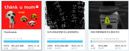 | 크라우드 펀딩 플랫폼 'ucanstart'의 프로젝트들 |