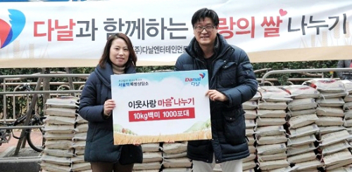 다날은 지난 18일 다날엔터테인먼트, 달콤커피 등 본사와 계열사를 포함한 200여명의 직원이 ‘2016 나눔캠페인’의 일환으로 사랑의 쌀 나눔 행사를 개최했다고 21일 밝혔다.