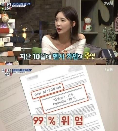 지주연은 지난 20일 방송된 tvN ‘뇌섹시대-문제적남자’에 게스트로 출연해 ‘멘사 합격’ 소식을 알렸다.
