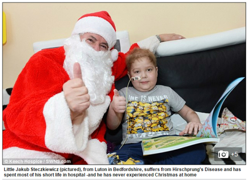 크리스마스만이라도 가족들과 집에서 보내고 싶다는 여섯 살 소년의 소원이 네티즌들을 안타깝게 하고 있다.