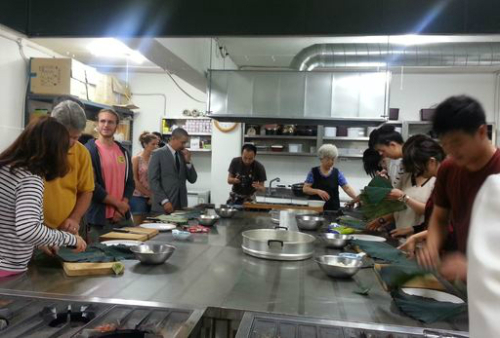 | 채식전문 음식점 마지에서 열리고 있는 외국인을 위한 한국전통음식 강좌. |