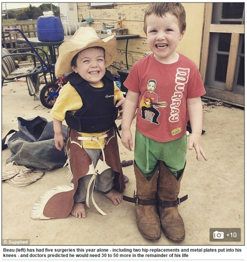 내년 초등학교 입학을 앞둔 코스그로브는 무릎의 철심 삽입을 비롯, 올해만 다섯 차례 수술대에 올랐다. 의사들은 코스그로브가 앞으로 살면서 30~50회는 수술받을 것으로 내다봤다.