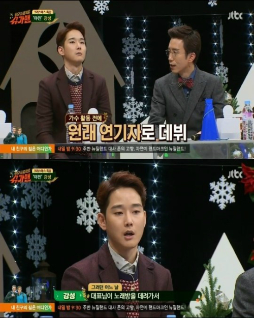 강성이 ‘슈가맨’에 출연해 화제인 가운데 연기자로서 데뷔한 일화를 공개했다.