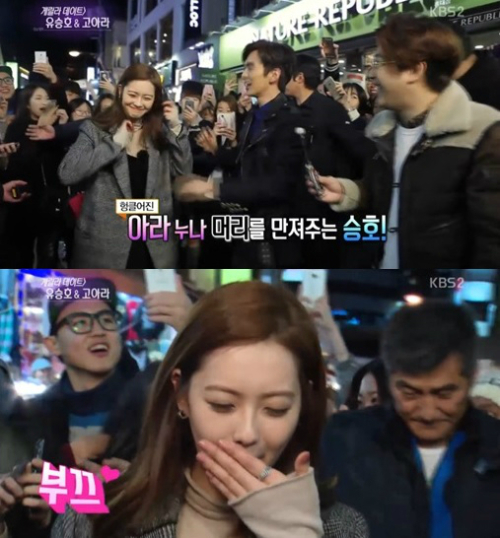 이후 등장한 유승호는 인파에 둘러싸인 고아라를 보호하기 위해 어깨동무를 하고 흘러내린 머리카락을 넘겨주는 등 다정한 모습을 하며 눈길을 끌었다. 이를 본 리포터는 "둘이 진짜 사귀는 거 아니냐"고 물어 두 사람을 당황하게 만들었다.