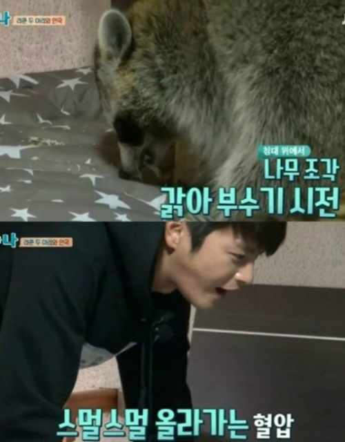 이날 방송에서 라쿤 빵꾸는 침대 밑에서 찾은 나무 조각을 갉아 부수며 침대 위를 엉망으로 만들었다.