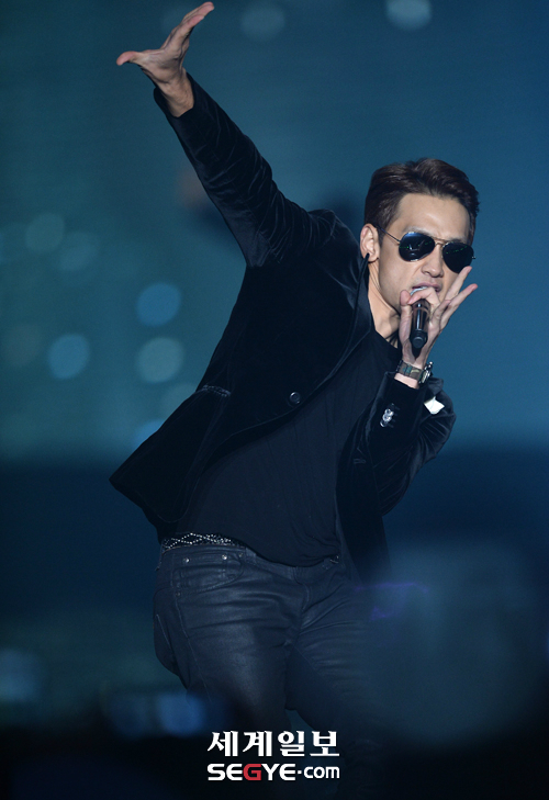 가수 비가 24일 오후 서울 송파구 방이동 올림픽공원 체조경기장에서 진행된 연말콘서트 '올나잇 스탠드2015-공연의 갓싸이' 무대에서 멋진 공연을 선보이고 있다.