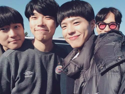 사진 속 박보검은 '응답하라 1988'에 함께 출연중인 류준열, 고경표, 이동휘와 함께 미소를 지으며 카메라를 응시하고 있다.