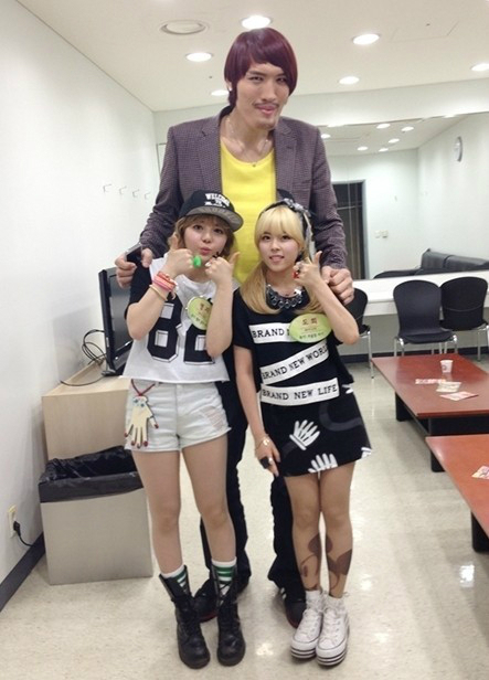 사진 속 최홍만과 타이니지 멤버 도희 명지가 다정하게 포즈를 취하고 있다. 그러나 키 차이가 무려 66센치 정도나 차이가 나는 최홍만과 도희는 마치 합성 사진같은 장면을 연출애 눈길을 사로잡았다.