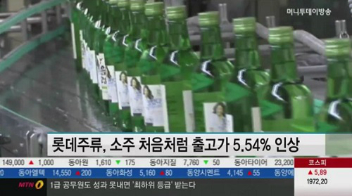 | [롯데주류의 처음처럼의 가격도 오를 전망이다. 사진=머니투데이방송 뉴스화면 캡처] |