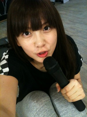 올라온 사진 속에는 카메라 가까이에 얼굴을 대고 마이크를 들고 있는 강지영의 모습이 담겼다.