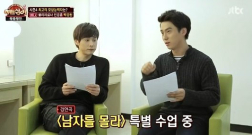 2일 밤 방송된 종합편성채널 JTBC 예능 프로그램 '히든싱어4' 왕중왕전에서는 민경훈이 원조 가수로서 자신의 모창 능력자 박경원 씨를 만나는 모습이 그려졌다.