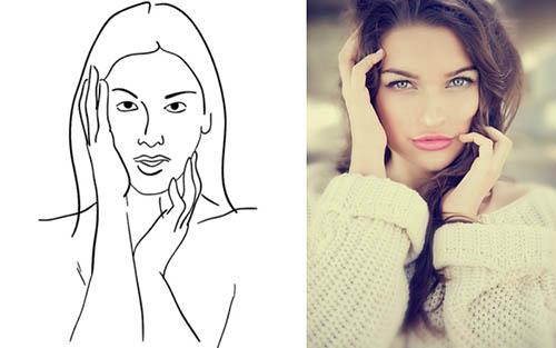 화장품 광고 등에 자주 나오는 포즈로 얼굴을 강조한다. 양손은 옆면만 나와야 한다.