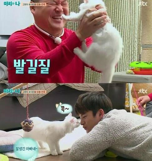 오는 6일 방송되는 JTBC '마리와 나'에서 강호동과 서인국은 고양이 세 마리의 일일아빠로 나서는 모습이 방송될 예정이다.