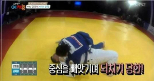 강호동의 기합에 김지윤은 초반 잠시 당황했지만, 되치기와 누르기 기술로 두번의 절반을 따내 승리했다.