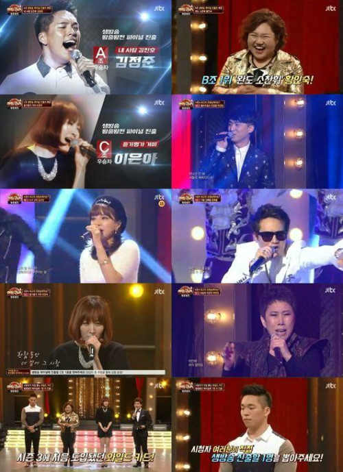 9일 오후 방송된 JTBC ‘히든싱어4’ 왕중왕전 2부에서는 13인의 모창능력자들이 TOP3가 되기 위해 대결을 펼치는 내용이 그려졌다. 모창능력자들은 3개 조로 나뉘어 대결을 펼쳤다.
