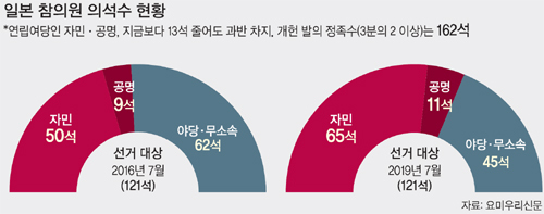 2007년 7월 참의원 선거 결과는 정반대였다. 민주당이 1인구 29곳 중 17곳을 차지한 반면 자민당은 6곳에 머물렀다. 전체 결과는 민주당 60석, 자민당 37석. 이에 따라 중의원은 집권 자민당이 다수당이었지만 참의원에서는 야당인 민주당이 다수당이 됐다.