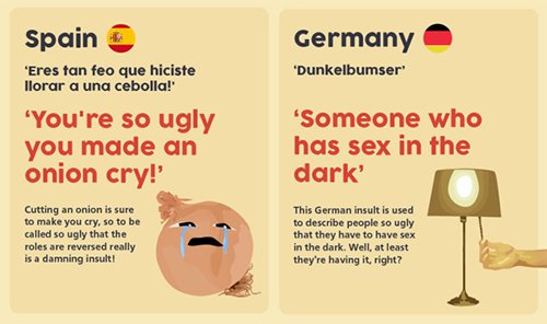 ‘너는 양파가 울고 갈 만큼 못생겼어!’. 보통 양파를 썰 때 눈물을 흘리는 쪽은 사람이다. 하지만 칼질하는 사람이 너무 못생긴 나머지 오히려 양파가 얼굴을 보고 운다는 뜻이다.