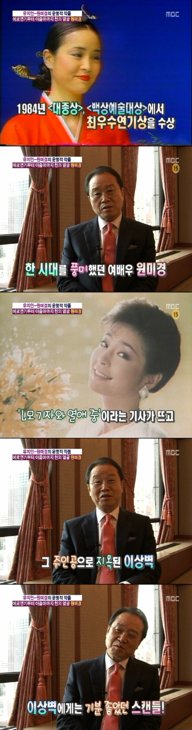 이날 스타의 인생을 바꿔놓은 운명적인 순간들이 공개됐다. 배우 이상벽은 80년대 최고 여배우로 인정받았던 원미경과의 과거에 있었던 스캔들에 대해 밝혔다.