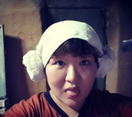 공개된 사진 속 그녀는 양머리를 하고 홍천 숯가마에서 휴식을 즐기고 있다.