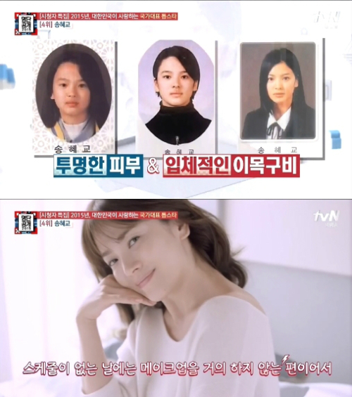 | ['태양의 후예'송혜교 과거사진 변천사 공개, 초중고 시절 모태미녀 사진=tvN 명단공개 방송화면] |