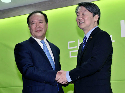 김봉수, 국민의당 입당 입력 : 2016-01-19 17:27:45 수정 : 2016-01-19 23:00:22 구글 네이버 유튜브 국민의당 안철수 인재영입위원장(오른쪽)이 19일 서울 마포구 당사에서 열린 김봉수 전 키움증권 부회장 영입 회견에서 김 부회장과 손을 맞잡고 있다. 이재문 기자 Copyright ⓒ 세계일보. 무단 전재 및 재배포 금지 세계일보