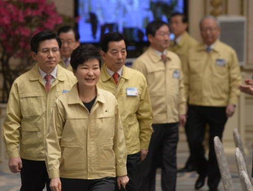 | 박근혜 대통령이 21일 오전 청와대에서 열린 제49차 중앙통합방위회의에 참석하고 있다. 청와대사진기자단 |
