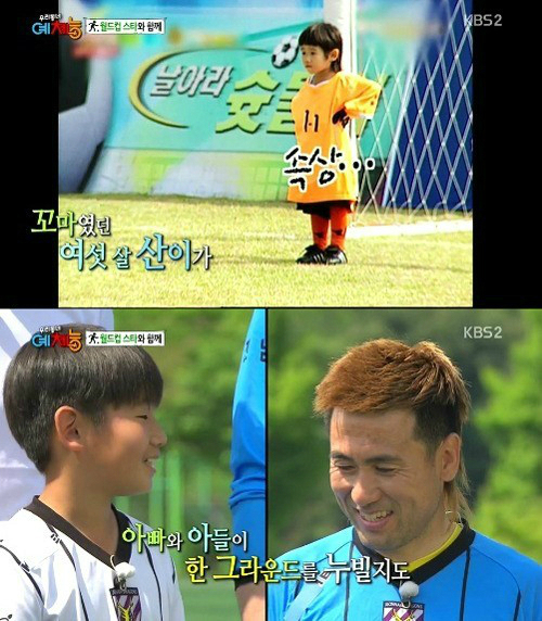 특히 아들이자 과거 '날아라 슛돌이'에 출연한 경험이 있는 아들 김산을 데리고 등장해 눈길을 끌었다.