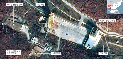 군 관계자는 “북한은 조립동에서 발사대까지 2개의 자동레일을 깔아 로켓 추진체를 발사대까지 신속하게 옮길 수 있도록 발사장 시설을 현대화했다”며 “발사대에는 가림막을 설치해 미국 군사위성을 피해 로켓 추진체를 장착할 수 있도록 했다”고 말했다.