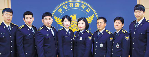 | 5일 경찰관으로 임용되는 제286기 경찰 특채 교육생들이 충북 충주 중앙경찰학교에서 포즈를 취하고 있다. 왼쪽부터 김완수, 김경중, 황희태, 임수정, 정경미, 윤기목, 이연수, 허준녕 순경. 중앙경찰학교 제공 |