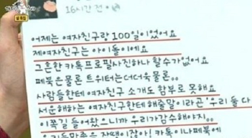 앞서 서강준은 자신의 SNS에 "어제는 여자 친구랑 100일이었어요. 제 여자 친구는 아이돌에요. 그 흔한 카톡 프로필 사진하나 할 수가 없어요. 페북은 물론 트위터는 더더욱 물론…"이라는 내용이 담긴 글을 게재한 바 있다.