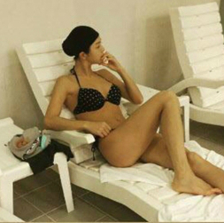 공개된 사진에서 권도예는 선베드에 누워 비키니 사이로 아찔한 각선미를 과시하고 있다.