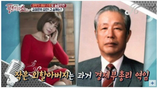 | [김정은, 결혼 앞두고 금수저 집안 화제 "작은 외할아버지는 경제부총리 역임"사진=방송화면 캡처] |