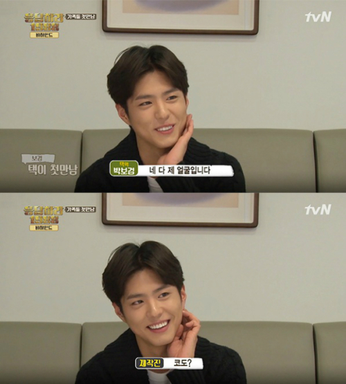 이날 방송에서 제작진과 첫 만남을 가진 박보검은 "얼굴은 다 (성형하지 않았나)"라는 질문에 "네 다 제 얼굴입니다"라고 답했다.