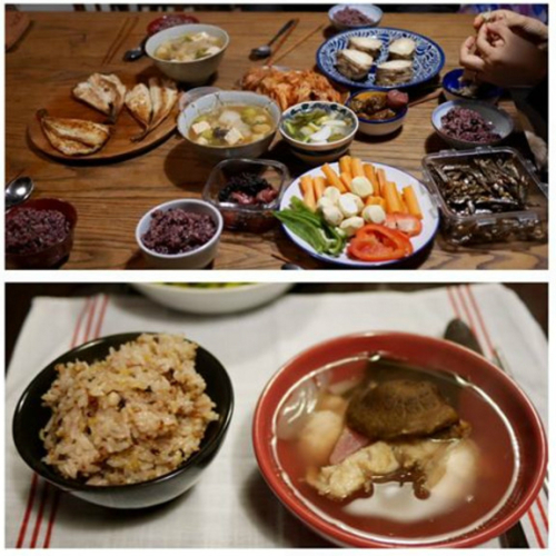 공개된 사진 속에는 정갈하게 차려진 한상차림과 밥과 국이 담겼다. 소복한 반찬에는 육류 없이 채소와 생선 뿐이다. 사진 한 귀통이에 생선 뼈를 바르고 있는 손이 눈길을 끈다.