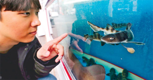 횟집 수족관서 태어난 참상어 새끼 입력 : 2016-02-26 18:50:18 수정 : 2016-02-26 18:50:17 구글 네이버 유튜브 26일 광주 북구 용봉동 한 횟집에서 손님이 수족관의 참상어 새끼들을 신기한 듯 바라보고 있다. 이 횟집 주인은 참상어 암수를 여수수협에서 구매해 수족관에서 키우던 중 이날 오전 새끼 41마리를 낳았다고 밝혔다. <연합>연합> Copyright ⓒ 세계일보. 무단 전재 및 재배포 금지 연합