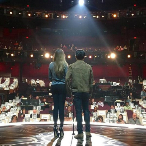 콜롬비아 출신 배우 소피아 베르가라는 28일(한국시간) 자신의 SNS에 리허설 과정에서 이병헌과 함께 무대에 오른 뒷모습 사진을 공개했다.