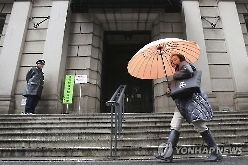 | 일본은행이 극약처방식으로 마이너스 금리정책 도입을 발표한 지난 1월 29일 일본 도쿄 니혼바시 일본은행 본점 앞을 한 여성이 우산을 쓰고 걸어가고 있다. |