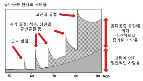 고관절 골절은 신체적 기능 저하로 인해 일상생활이 힘들어져 나와 가족의 삶의 질을 낮추는 요인이 된다. 따라서 골다공증은 조기에 점검하고 관리하는 것이 무엇보다 중요하다. 평생 골다공증 골절이 발생할 가능성(Life time risk)은 남성 10%, 여성은 30% 정도이며 척추, 손목, 팔•다리, 골반 순서로 나타난다.