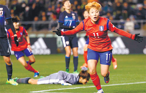 10년이 흘러 2일 일본 오사카에서 열린 리우올림픽 아시아 예선 한·일전. 11번 정설빈(26·인천 현대제철)은 패색이 짙던 후반 42분 극적인 동점골을 터뜨려 대표팀 스트라이커로 우뚝 섰다. 정설빈은 바로 정혜인이다.