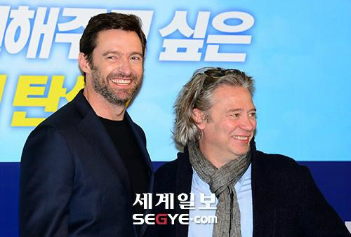| '독수리 에디' 휴 잭맨(왼쪽)과 덱스터 플레처 감독/사진=김경호 기자 |
