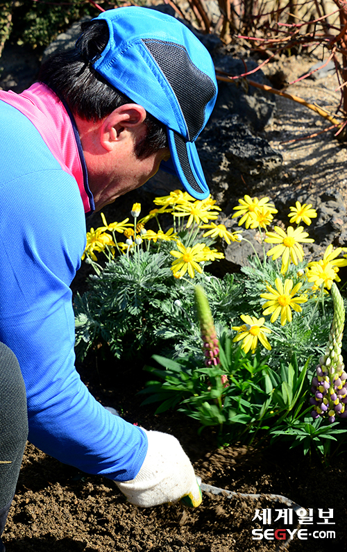 따뜻한 봄 햇살이 비추는 15일 서울광장에서는 환경미화원들이 팬지, 비올라, 수선화 등 다양한 색의 꽃을 심고 있다. 서울광장을 찾은 시민들은 활짝 핀 꽃을 보며 다가오는 봄을 맞이하고 있다.